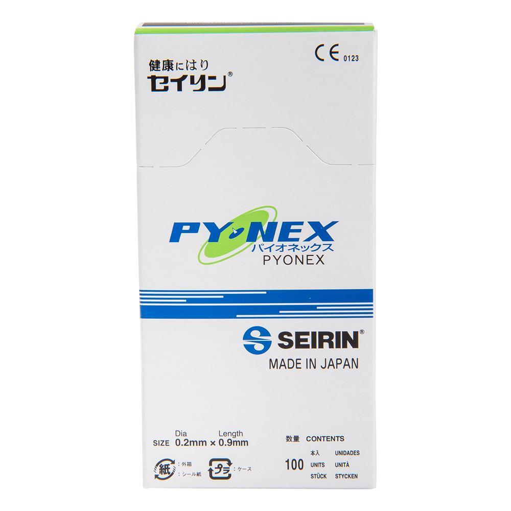 Die 0,20 mm dünne Nadel versteckt sich auf der Klebefläche und ist vom Patienten kaum wahrnehmbar. Die Stimulierung der Dauernadel erfolgt per Fingerdruck auf den in der Oberseite des Pflasters eingearbeiteten gut fühlbaren Druckpunkt. Dadurch werden Patienten aktiv in die Therapie miteinbezogen und der therapeutische Effekt vergrössert. Ein weiterer Vorteil ist: Eltern können bei Bedarf ihre Kinder zu Hause behutsam weiterbehandeln. NEW PYONEX Nadeln sind für Körper und je nach anatomischen Gegebenheiten auch für Ohrpunkte einsetzbar. Da besonders kurze Grössen (0,30 - 1,5 mm) erhältlich sind, werden NEW PYONEX Dauernadeln bevorzugt bei Kindern und schmerzempfindlichen Patienten sowie Nadelphobikern eingesetzt.