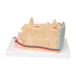 Das Zusammenspiel der einzelnen Bestandteile wie Spongiosa, Kompakta, Knochenhaut, Kortikalis, Knochenzellen, Volkmannschen und Haverschen Kanälen kann an diesem Modell anschaulich erklärt werden.